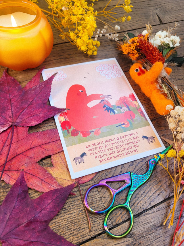✸ Cette illustration est imprimée au format carte postale A6 (10,5 x 14,8 cm) sur du papier offset 350g qui permet d'avoir un rendu lisse et satiné au recto, et une texture blanche et inscriptible au verso, afin de pouvoir écrire dessus facilement et en faire une carte postale si tu le souhaites !